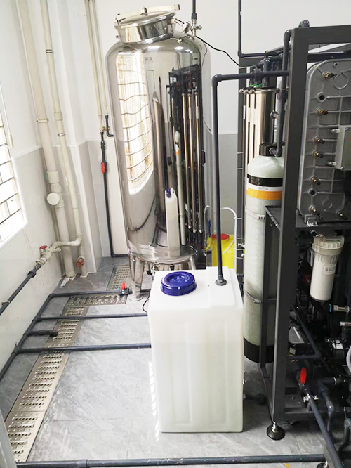 并且在根据中南民大生命科学院的实际用水需求进行调整,在EDI模块后再加上了DI离子抛光纯化柱,对超纯水水质进一步过滤,确保出水水质可以满足生命科学的研究。