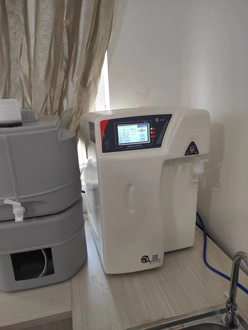 4.全彩液晶显示器上显示日期、时间、电导率等数值,通过按钮可设置制水时间、制水量以及取水量等;