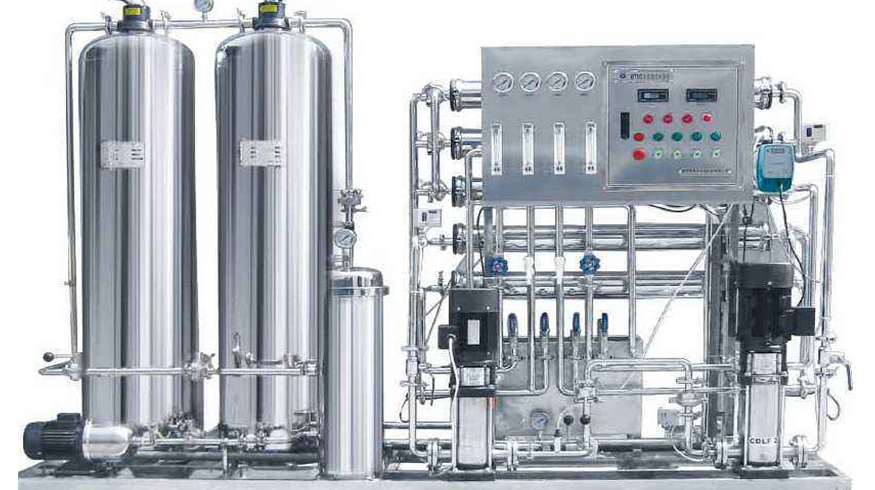 原水→原水加压泵→多介质过滤器→活性炭过滤器→软水器→精密过滤器→阳树脂过滤床→阴树脂过滤床→阴阳树脂混床→微孔过滤器→用水点