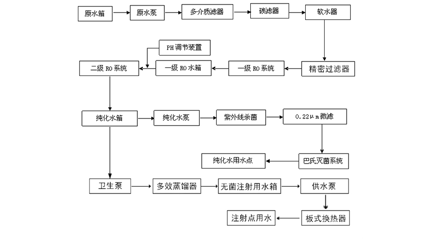 注射用水与一般的超纯水不同,它需要控制水中的热源与微生物,注射用水是一种无菌制剂,在很多药厂中都应用的非常广泛,并且在药典与GMP中都有明确的规定,GMP中严格规定“纯化水、注射用水的制备、储存和分配应能防止微生物的滋生和污染。储罐和输送管道所用材料应无毒、耐腐蚀。药典中规定,除一般的蒸馏水的检查项目,如酸碱度、氯化物、硫酸盐、钙盐、铵盐、二氧化碳、易氧化物、不挥发物及重金属均应符合规定外,尚须通过热原检查。