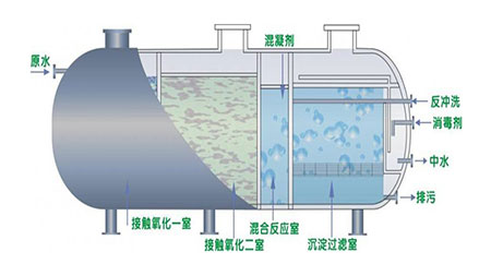 3、污水处理设备中的A/O生物处理工艺采用推流式生物接触氧化池,它的处理效果优于完全混合式或二、三级串联完全混合式生物接触氧化池。该生物氧化池比活性污泥池体积小,对水质适应性强,而且能耐冲击,性能好,出水水质也极其稳定。采用新型弹性立体材料,具有实际比表面积大,微生物挂膜、脱膜方便,而且对有机物去除率高,能提高空气中氧在水中的溶解度。