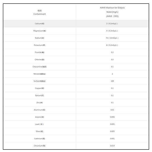 此文关键词:AAMI和ASAIO血液透析用水水质标准